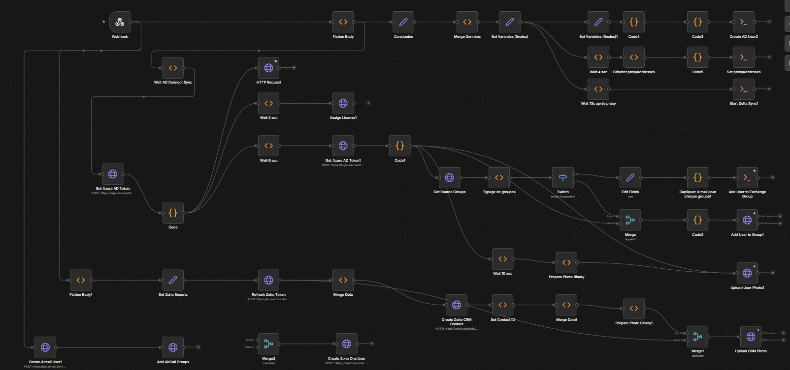 Téléphonie, CRM, annuaires externes, ERP, applications métiers — provisionnés automatiquement.